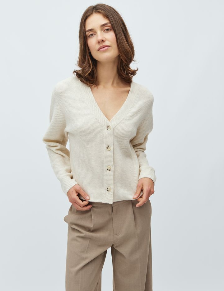 51% Acrylic - 36% Nylon - 7% Elasthane - 6% Wool Loose fit Closes with buttons V-neck at the back True to size